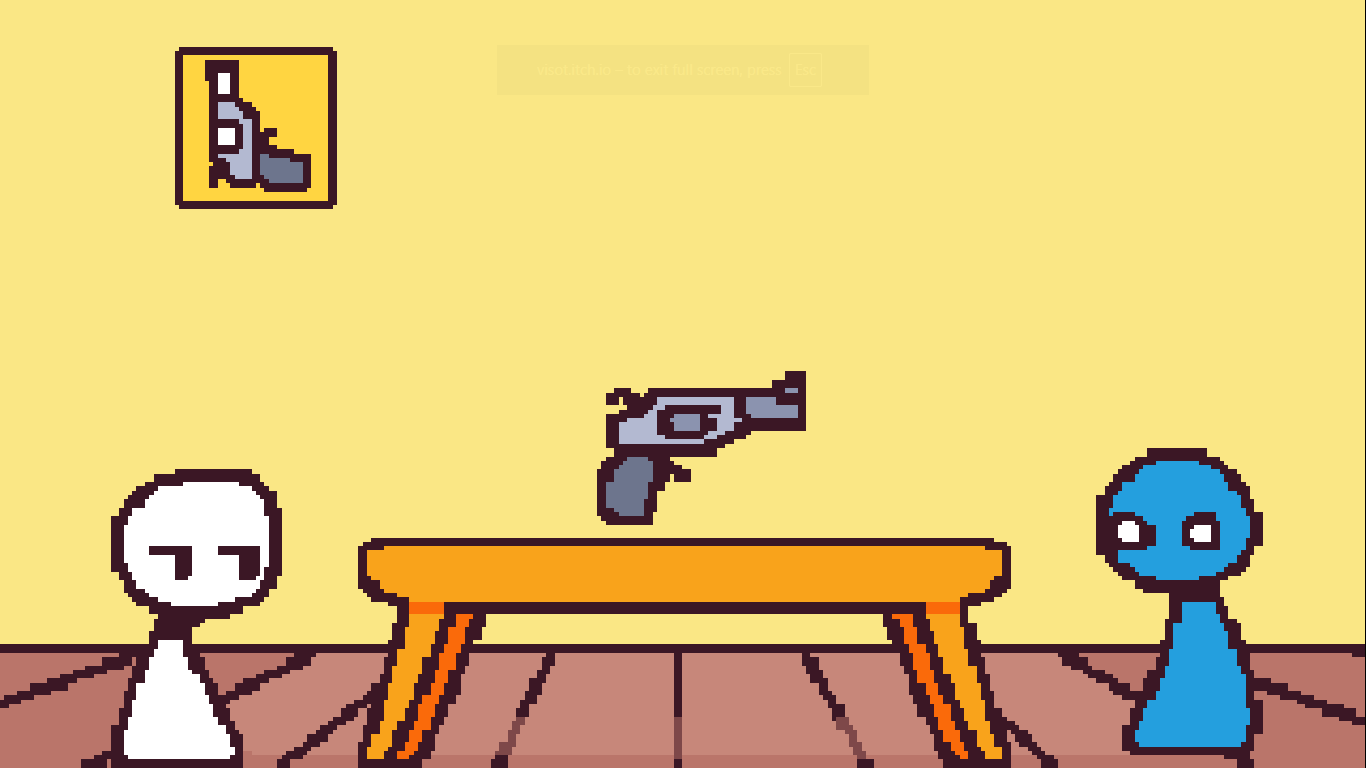 Roolet is a Russian roulette game. But instead of spinning the cylinder every turn, it's only spun once per round, until someone dies. So someone is guaranteed to die (yes it's inspired by Squid Game). You're stuck in this loop until you lose